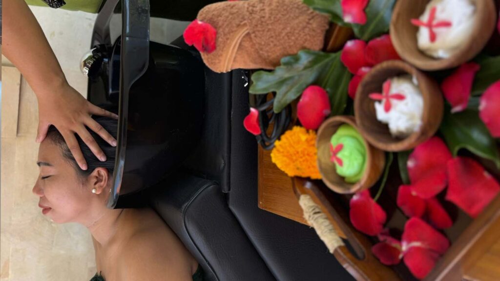 Cream bath is a Hair and scalp treatment to care for, moisturise dry hair, soften and nourish the hair, and prevent hair from being damaged. Your treatment begins with a head massage, shoulder massage, and hand massage.